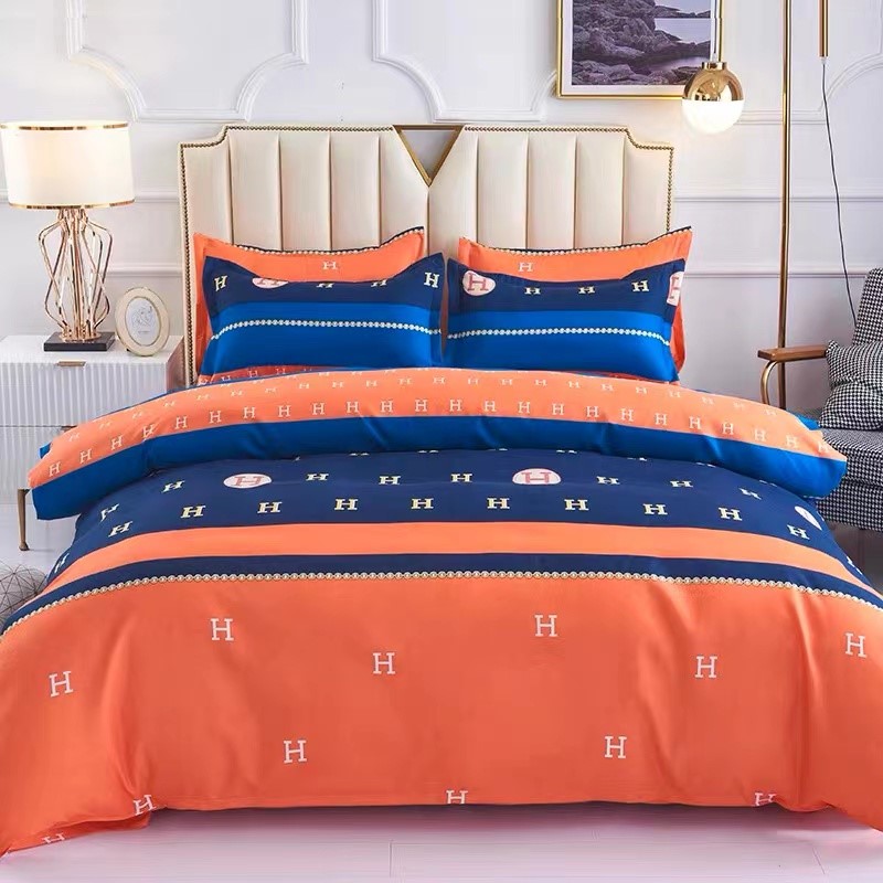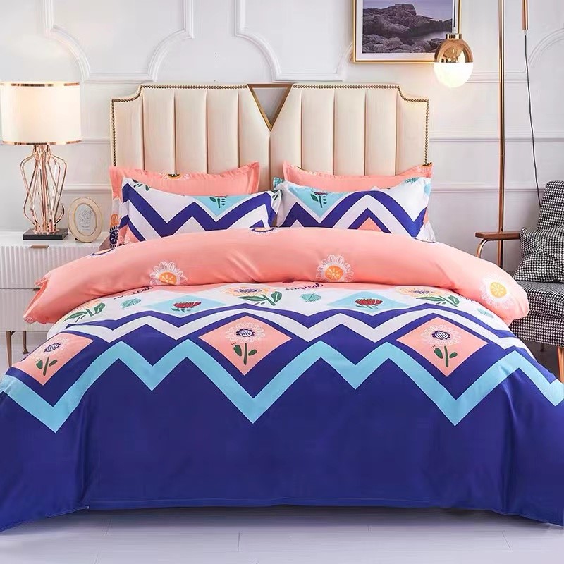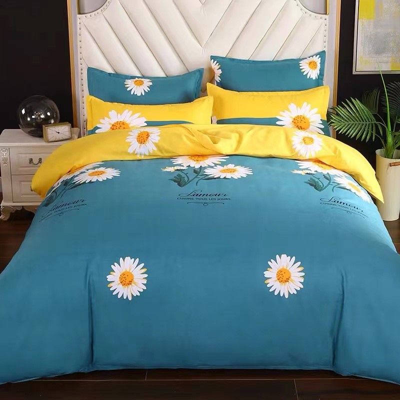 Chemical fiber bed linen four-piece set sheet quilt cover cute cartoon digital printing bedding student three-piece set