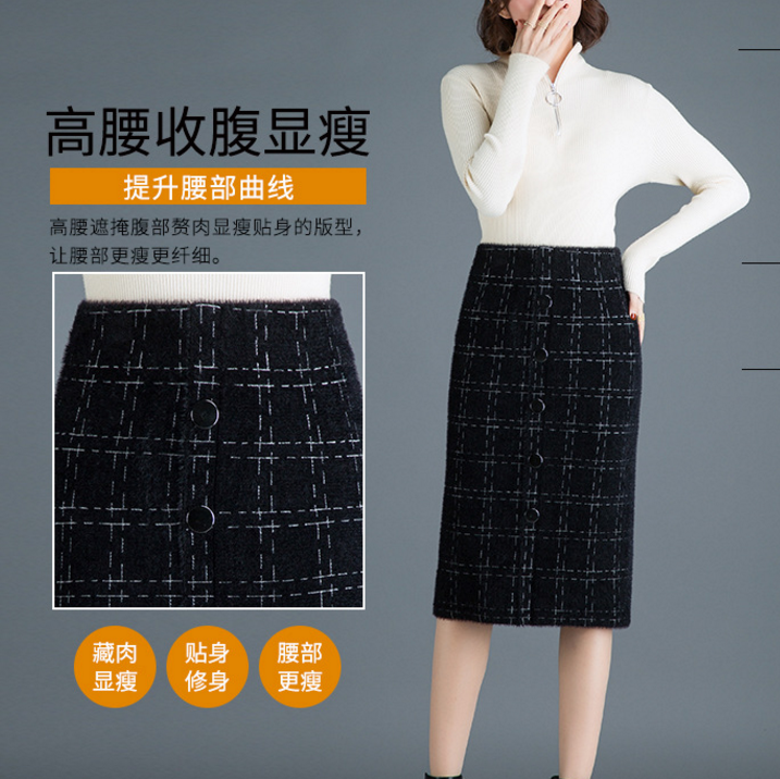 New fashion ladies casual knitted grid pencil skirt