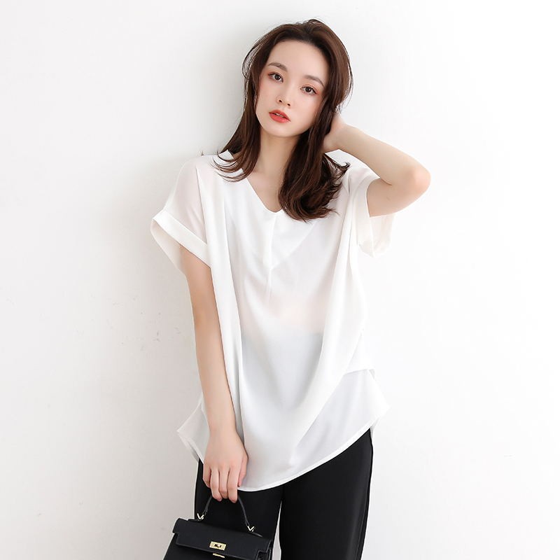 Japanese women's tops, short-sleeved chiffon shirts, skin-friendly shirts, breathable casual shirts
