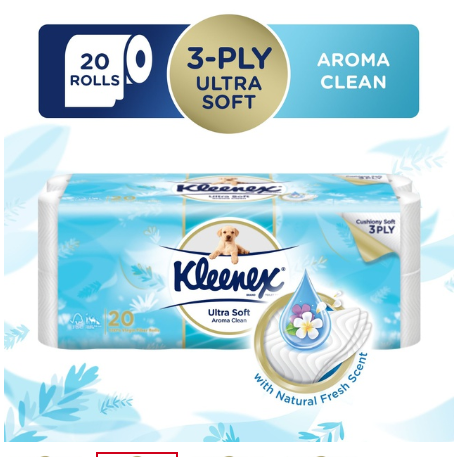 Kleenex toilet tissue offer ultra softness and strength with 3-ply thick sheets. Designed with our consumers in mind and developed with advanced technology using 100% virgin fibers. Each sheet gives a comforting sensation of softness, helping to ensure the best in gentle, family hygiene care.