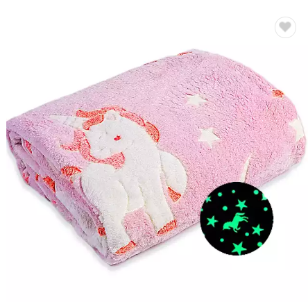 Custom Flannel Plush Luminous Throw Blanket Manufacture Neon Unicorn Magic Glow in The Dark Baby Blanket All Season Kids BlanketUSD 3.13 -
