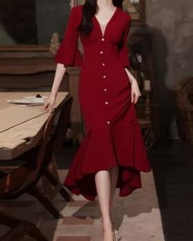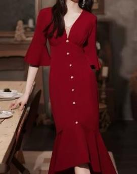 Slit Back V Collar Plain Solid Color Border Sleeve Short Dress Maxi Cotton Elegant ladies Causal Dance dressUSD 15.00 -