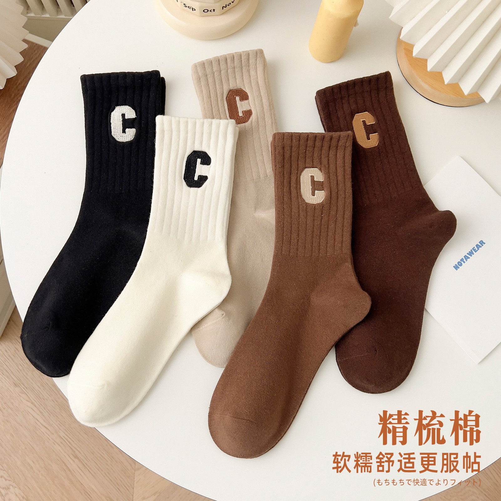 Mid-calf socks embroidered with C letter, long-calf sports and leisure socksUSD 0.42- 0.45