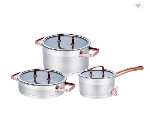 Straight shape rose gold color handle stainless steel cookware cooking pots and pans set induction pot setUSD 23.90 -