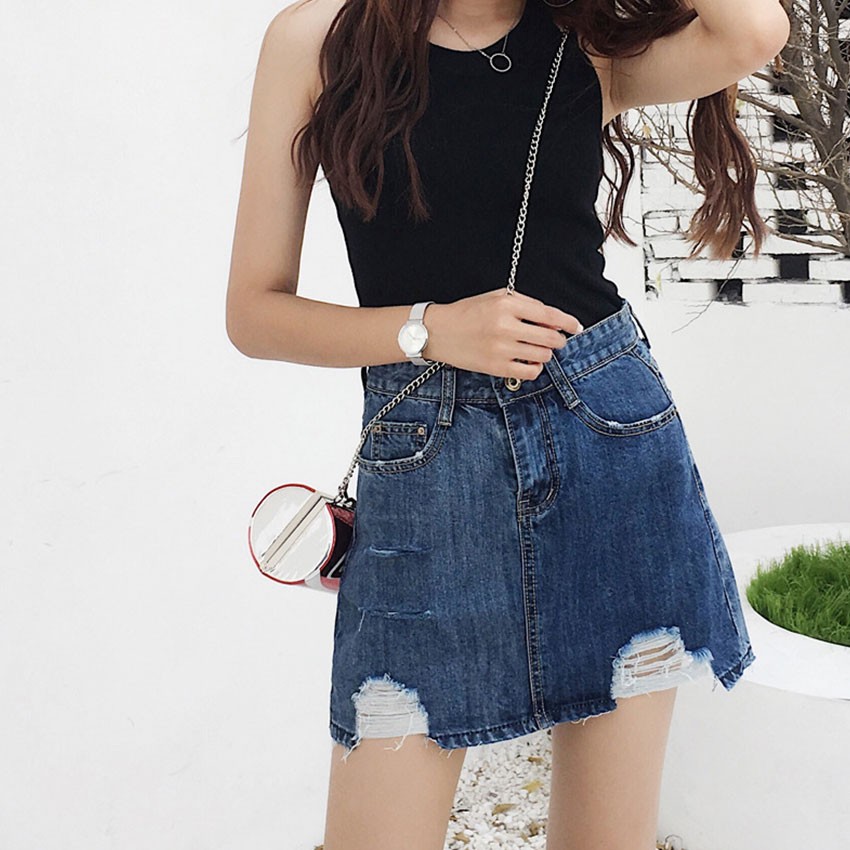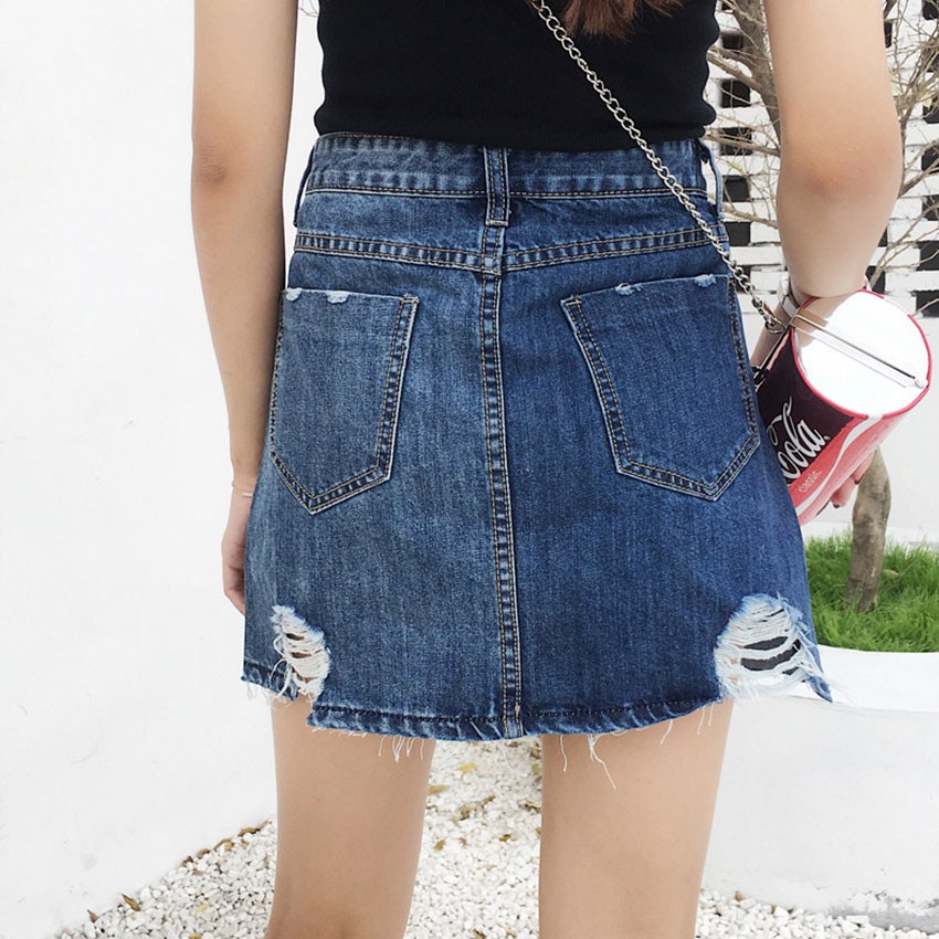 Wholesale Summer Fashion Style Ripped Mini Faldas Blue Casual Denim Women High Waist Short Jupe Jeans Skirt With PocketsUSD 35.00 -