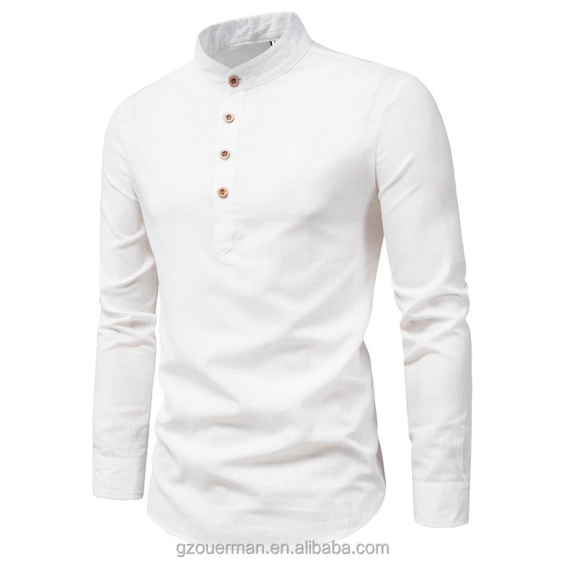 New Fashion Men Spring Cotton Linen Pure Color Button Mandarin Collar Long Sleeve Business Tops Pullover Blouse Casual ShirtUSD 9.31 -