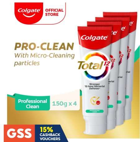 Colgate Total Professional Clean Gel Antibacterial Toothpaste Valuepack 150g [Bundle of 4] Value Deal (TH02887A-4)