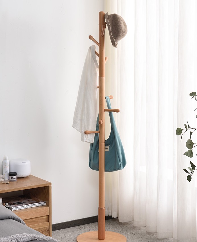 Solid wood coat rack, floor type, household living room, hanging bag rack, single pole coat rack, simple modern bedroom, hanging clothes rack