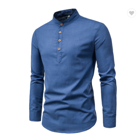 New Fashion Men Spring Cotton Linen Pure Color Button Mandarin Collar Long Sleeve Business Tops Pullover Blouse Casual ShirtUSD 9.31 -
