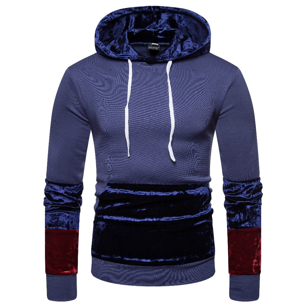 SWAGWHAT Causal Hoodie Men New Fashion Men's Patchwork Hoodie Sweatshirts Long Sleeve Hooded Pullover Jacket Coat Men Tops