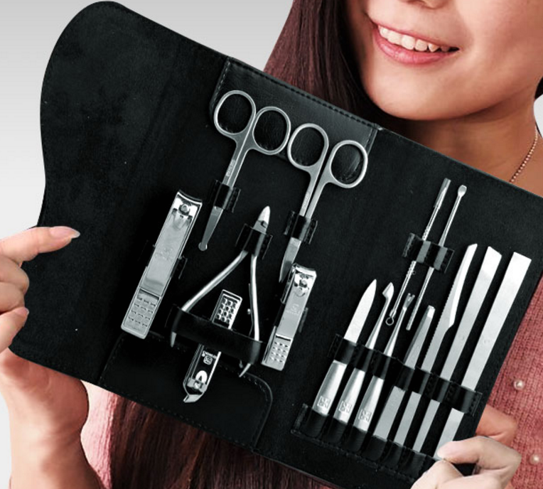 15 sets of nail tools, 15 functional accessories, tools for hands, face, and feet, in various colors.