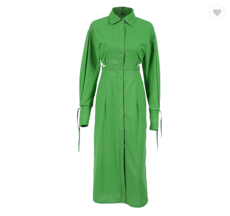 Wholesale New Trend Lace Up Ruched Green Long Sleeve Shirt Dress Hollow Out Back Midi Womens Dresses