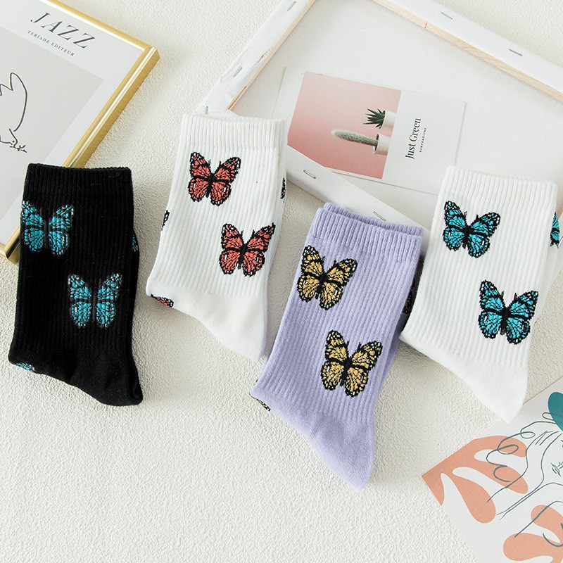 Women Pretty Butterfly Cotton Tube Socks Girl Socks
